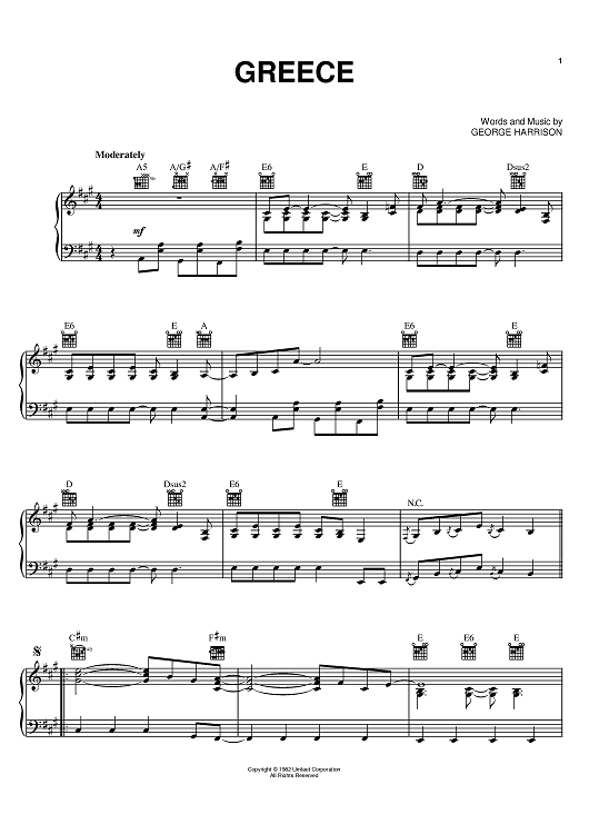 "Greece" Sheet Music by George Harrison