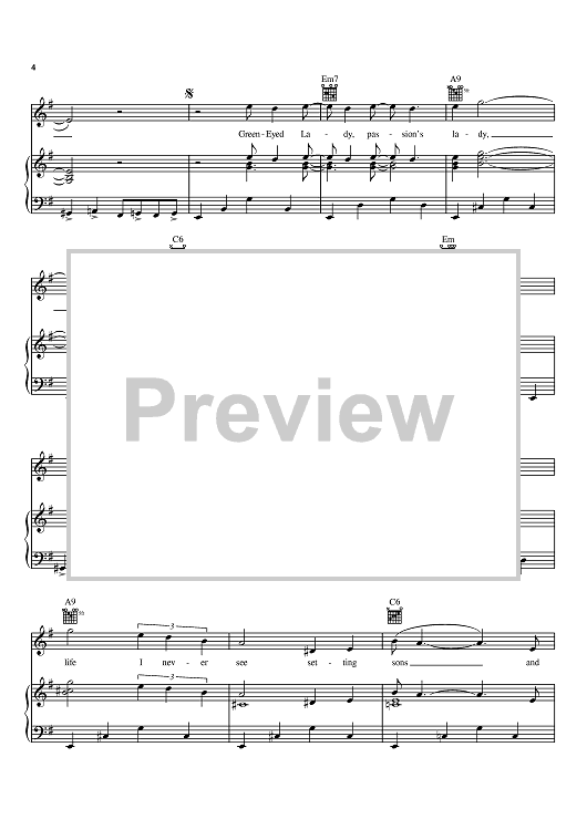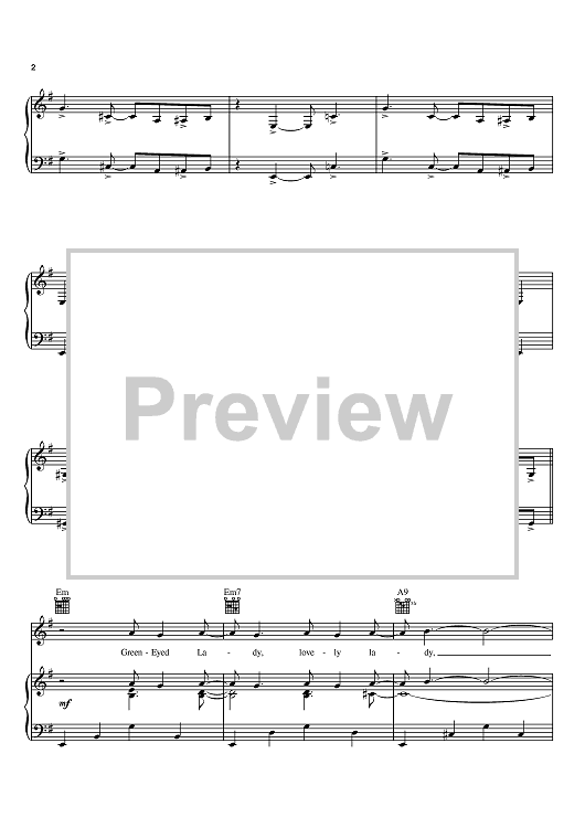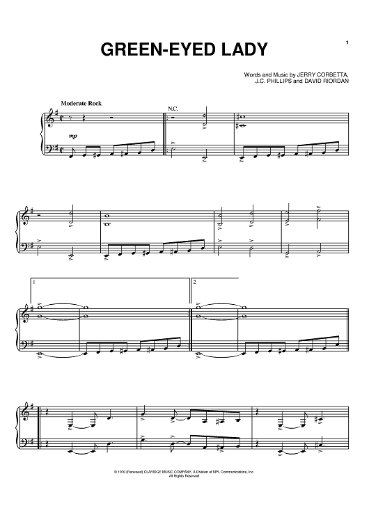 Digital Sheet Music for Green-Eyed Lady by Jerry Corbetta, J.C. Phillips, David Riordan, Sugarloaf scored for Piano/Vocal/Chords; id:385725