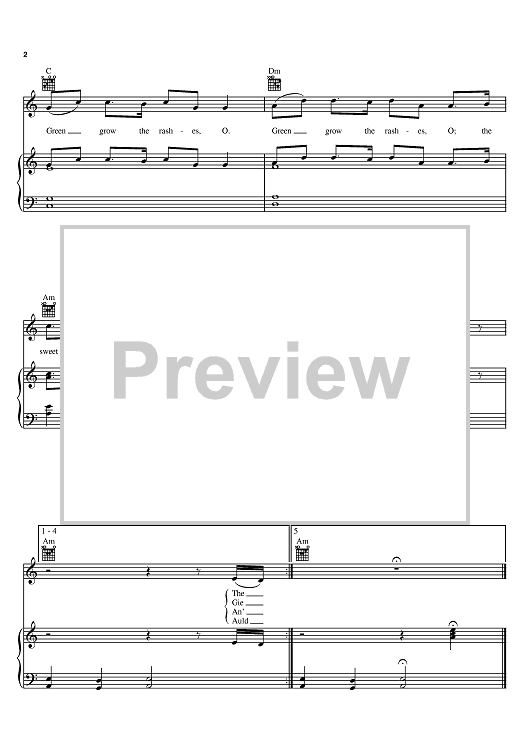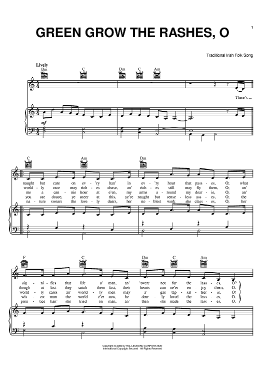 Digital Sheet Music for Green Grow The Rushes-O by scored for Piano/Vocal/Chords; id:393954