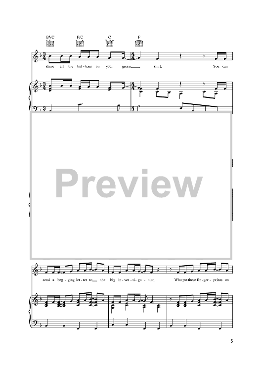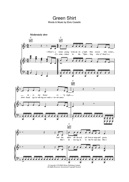 Digital Sheet Music for Green Shirt by Elvis Costello scored for Piano/Vocal/Chords; id:401570