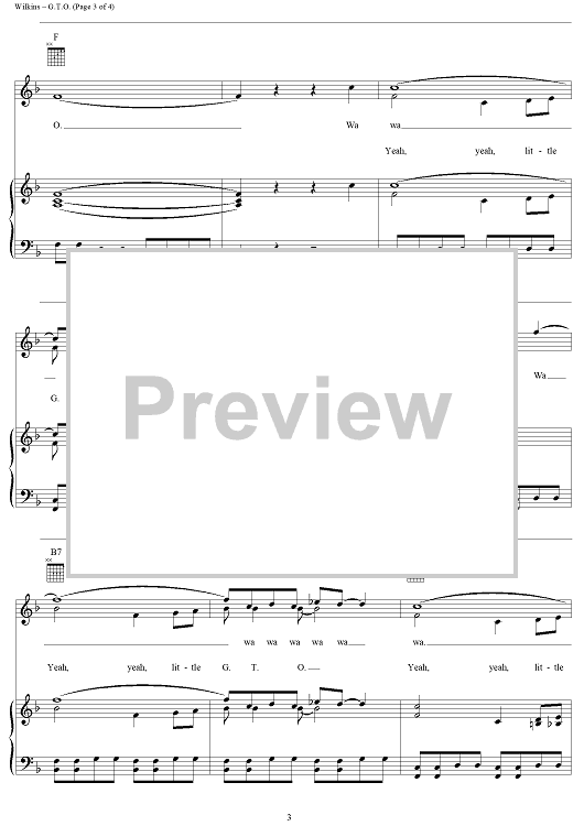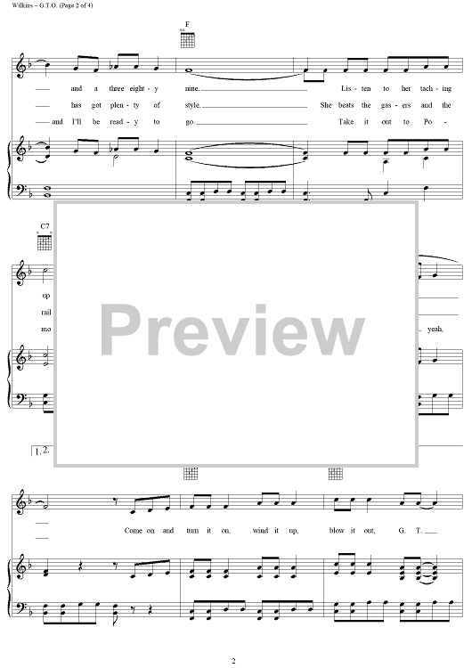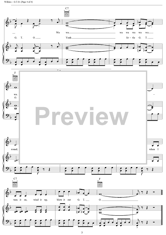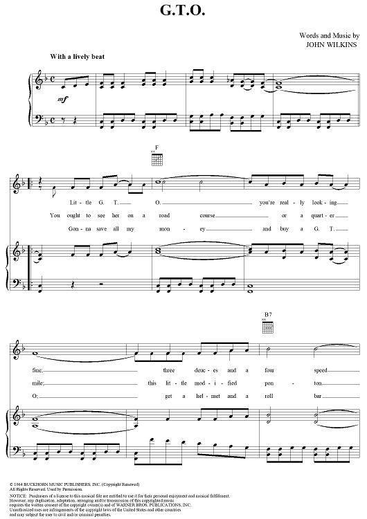 Digital Sheet Music for G.T.O. by John Wilkins, Ronny and the Daytonas scored for Piano/Vocal/Chords; id:124314
