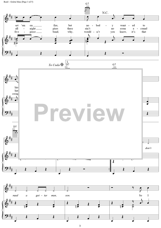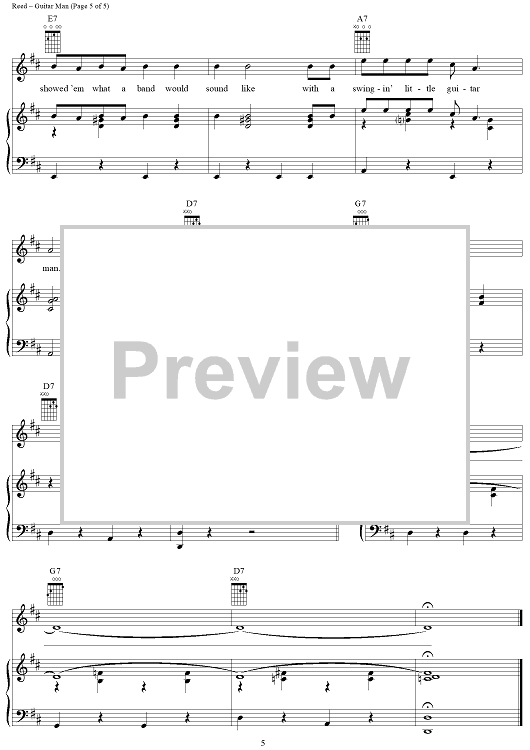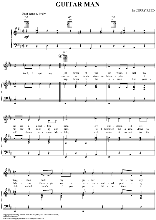 Digital Sheet Music for Guitar Man by Elvis Presley, Jerry Reed scored for Piano/Vocal/Chords; id:382292