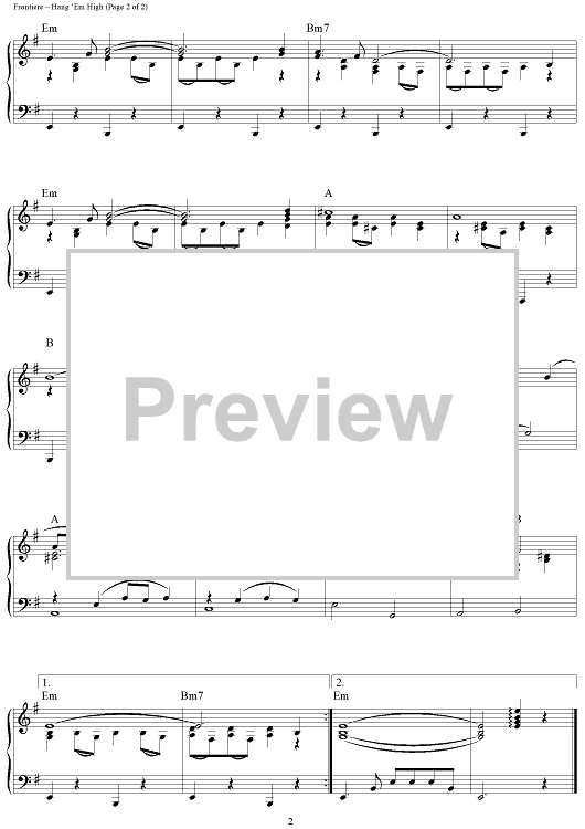 Digital Sheet Music for Hang 'Em High by Hugo Montenegro, Dominic Frontiere, Booker T. & The MG's scored for Piano/Chords; id:363961