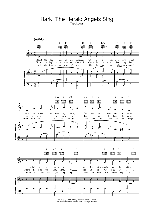 Digital Sheet Music for Hark! The Herald Angels Sing by scored for Piano/Vocal/Chords; id:375677