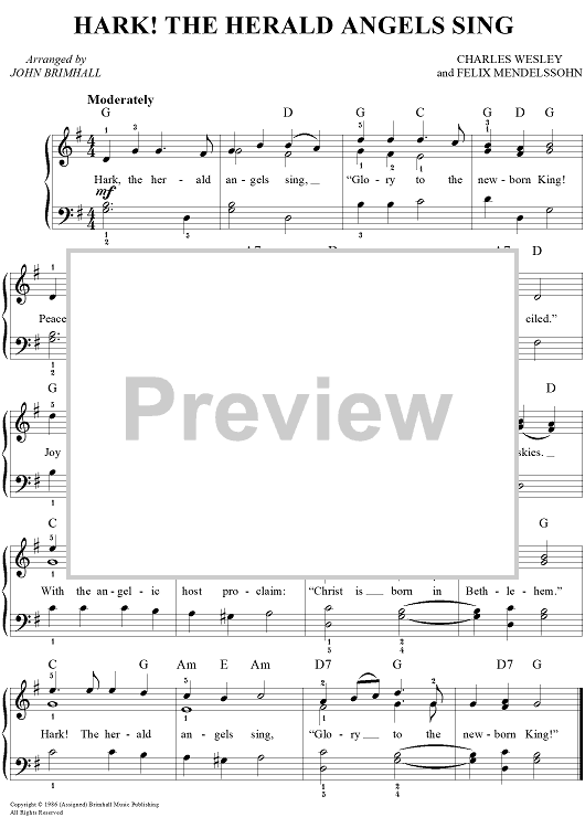 Digital Sheet Music for Hark! The Herald Angels Sing by Felix Mendelssohn, Charles Wesley, John Brimhall scored for Easy Piano/Vocal/Chords; id:450546