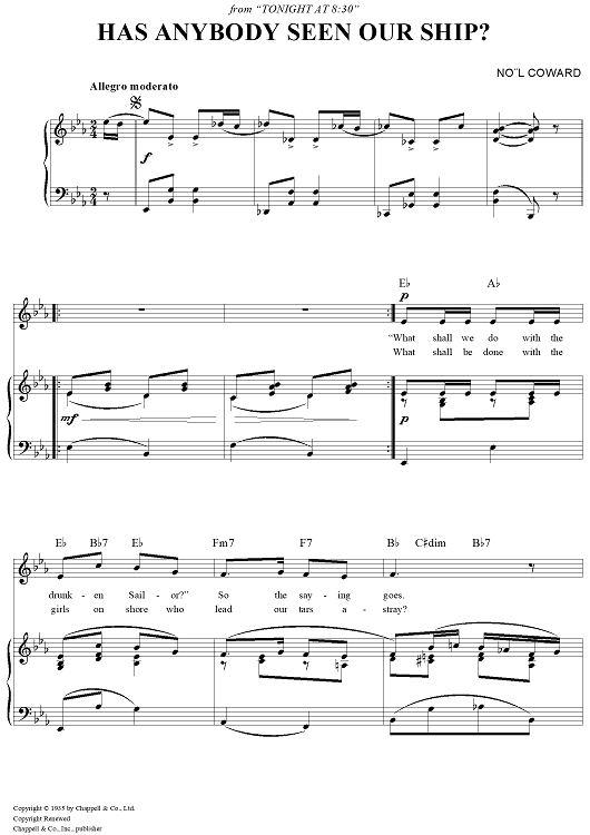 Digital Sheet Music for Has Anybody Seen Our Ship? by Noel Coward scored for Piano/Vocal/Chords; id:356887