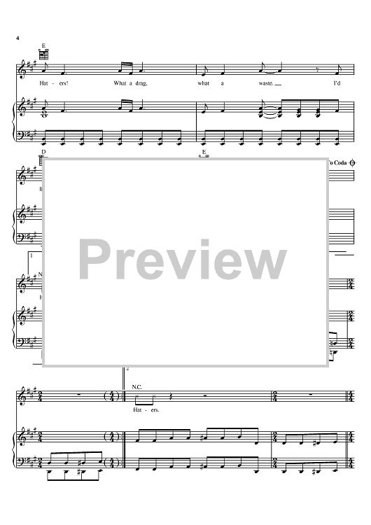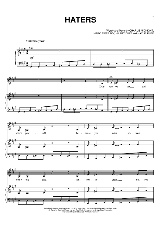 Digital Sheet Music for Haters by Charlie Midnight, Haylie Duff, Marc Swersky, Hilary Duff scored for Piano/Vocal/Chords; id:383196