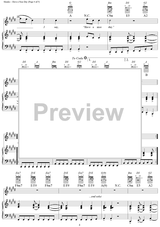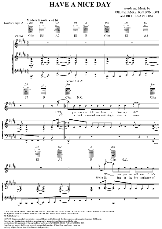 Digital Sheet Music for Have A Nice Day by Bon Jovi, Richie Sambora, John Shanks, Jon Bon Jovi scored for Piano/Vocal/Chords; id:314677