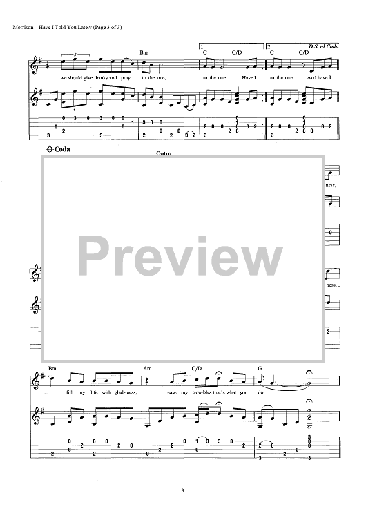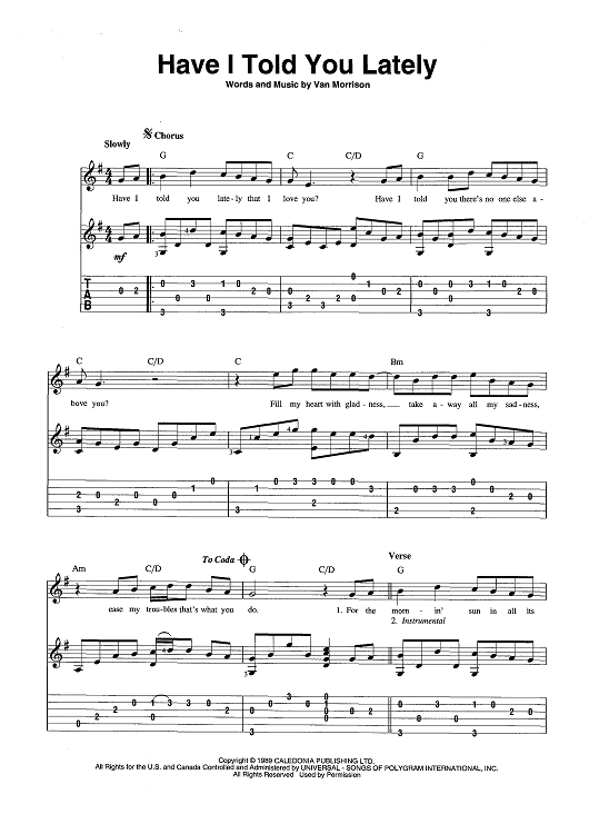 Digital Sheet Music for Have I Told You Lately by Van Morrison scored for Guitar Tab/Vocal/Chords; id:443641