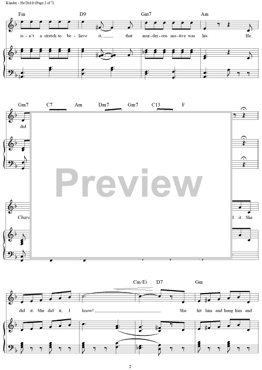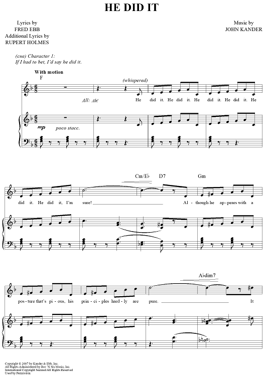 Digital Sheet Music for He Did It by John Kander, Rupert Holmes, Fred Ebb scored for Piano/Vocal/Chords; id:451429