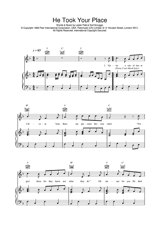 Digital Sheet Music for He Took Your Place by Earl Scruggs, Lester Flatt, Daniel O'Donnell scored for Piano/Vocal/Chords; id:376392