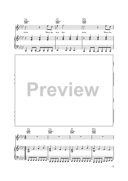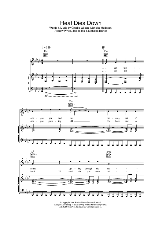 Digital Sheet Music for Heat Dies Down by Nick Baines, Nick Hodgson, Kaiser Chiefs, Simon Rix, Andrew White, Charlie Wilson scored for Piano/Vocal/Chords; id:397023