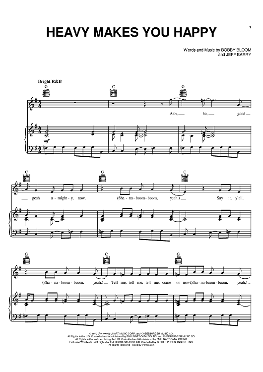 Digital Sheet Music for Heavy Makes You Happy by Jeff Barry, Bobby Bloom, The Staple Singers scored for Piano/Vocal/Chords; id:398113