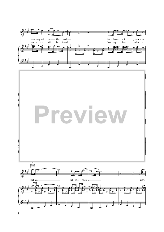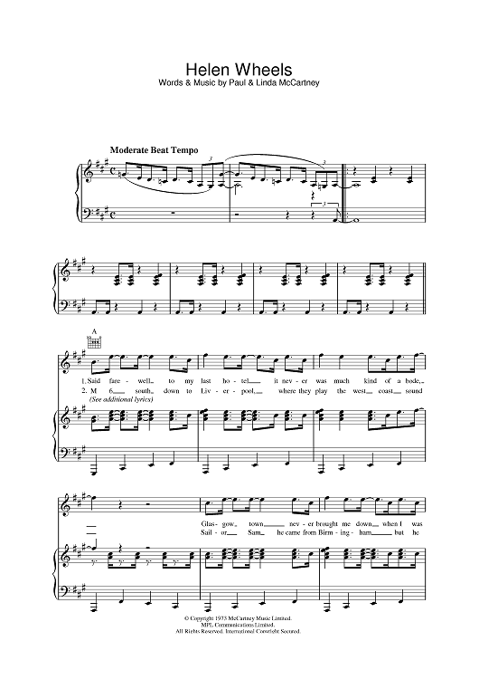 Digital Sheet Music for Helen Wheels by Paul McCartney, Linda McCartney scored for Piano/Vocal/Chords; id:390594