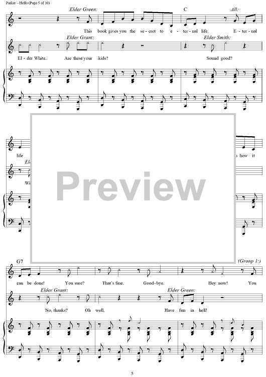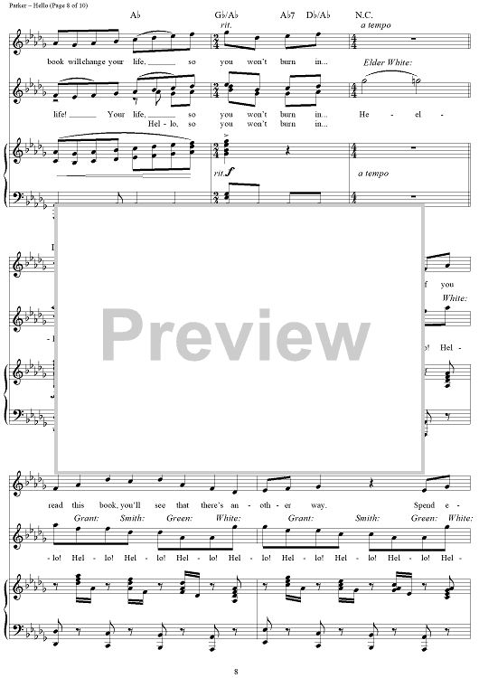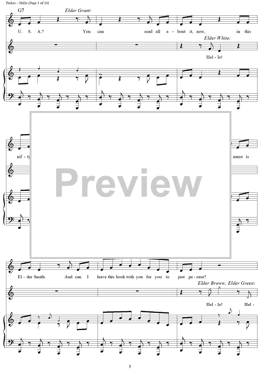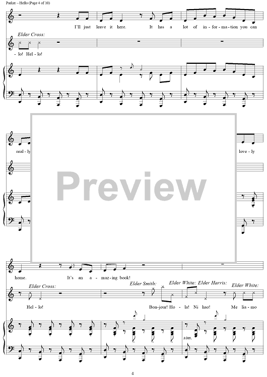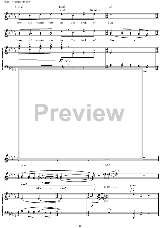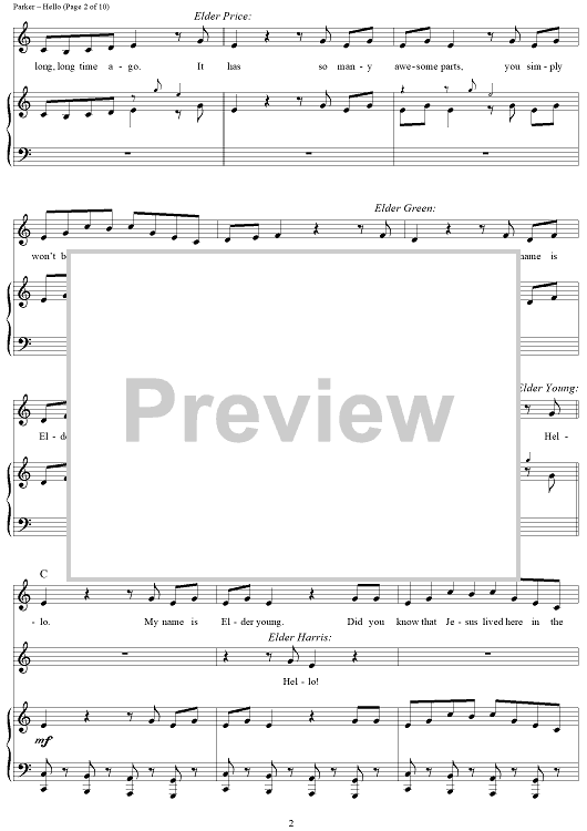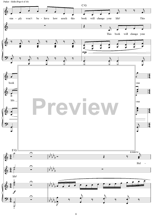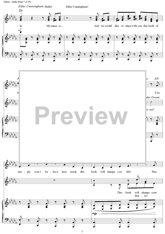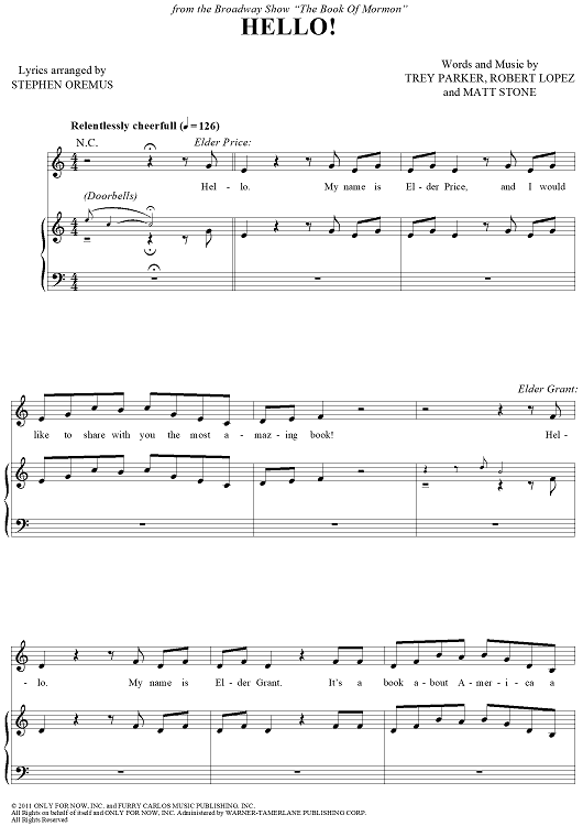 Digital Sheet Music for Hello! by Robert Lopez, Trey Parker, Matt Stone, Stephen Oremus scored for Piano/Vocal/Chords; id:429483