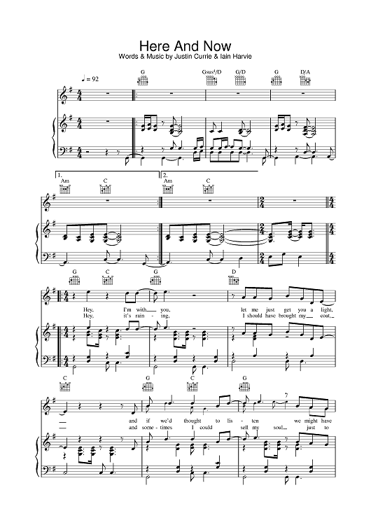 Digital Sheet Music for Here And Now by Justin Currie, Del Amitri, Iain Harvie scored for Piano/Vocal/Chords; id:375685