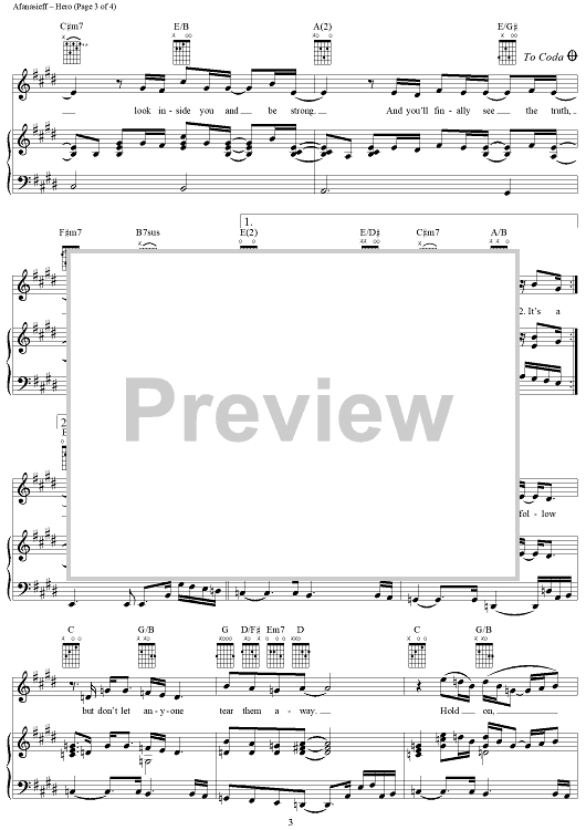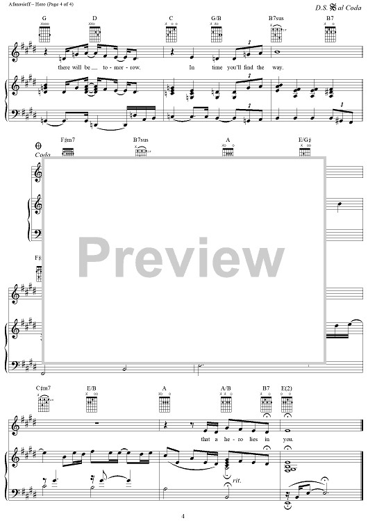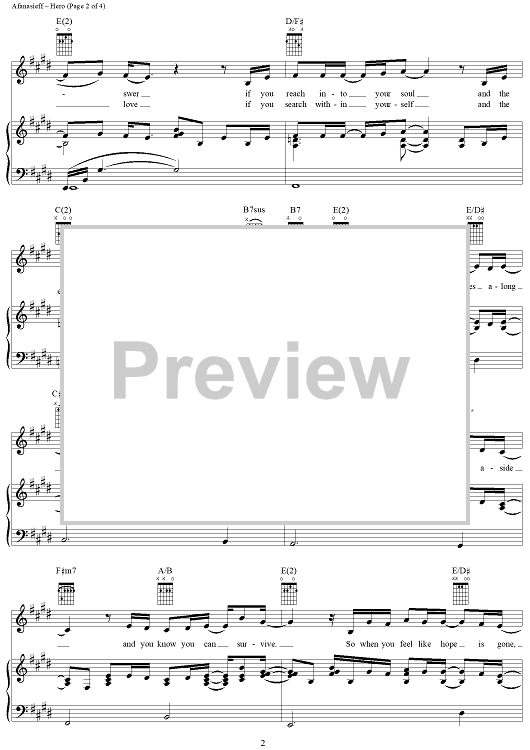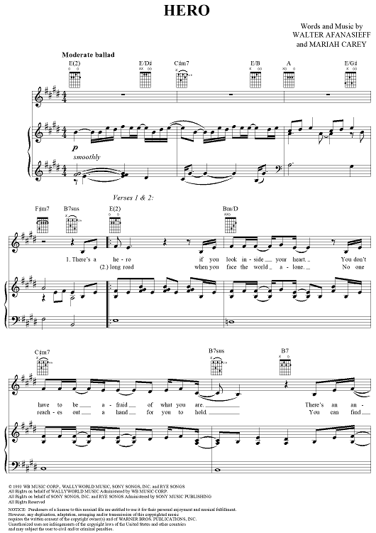Digital Sheet Music for Hero by Mariah Carey, Wally Afanasieff scored for Piano/Vocal/Chords; id:276810