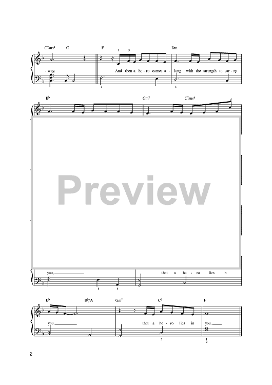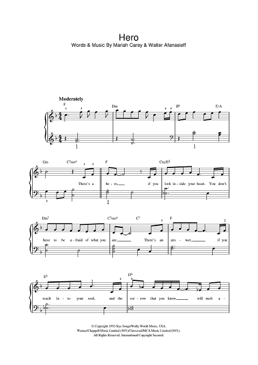 Digital Sheet Music for Hero by Mariah Carey, Wally Afanasieff scored for Piano/Vocal/Chords; id:385374