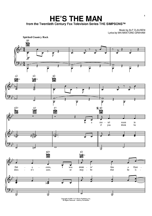 Digital Sheet Music for He's The Man by Alf Clausen, Ian Maxtone-Graham scored for Piano/Vocal/Chords; id:394055