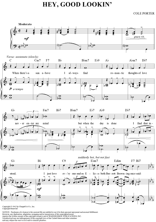 "Hey, Good Lookin'" Sheet Music by Cole Porter