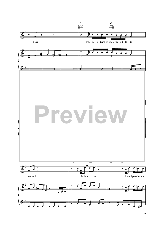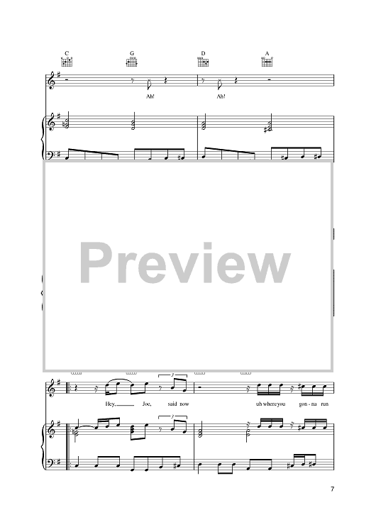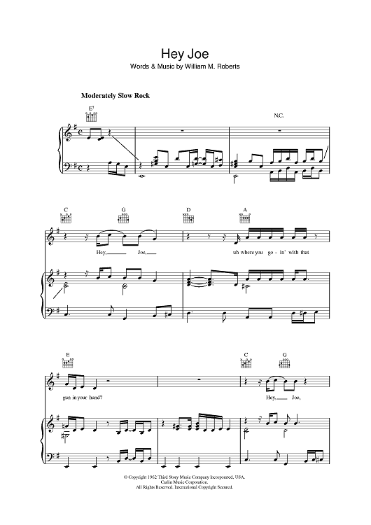 Digital Sheet Music for Hey Joe by Jimi Hendrix, Billy Roberts scored for Piano/Vocal/Chords; id:391613