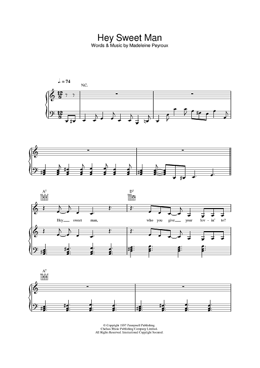 Digital Sheet Music for Hey Sweet Man by Madeleine Peyroux scored for Piano/Vocal/Chords; id:388718