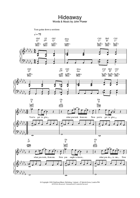 Digital Sheet Music for Hideaway by Cast scored for Piano/Vocal/Chords; id:376875