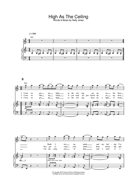 Digital Sheet Music for High As The Ceiling by Stereophonics scored for Piano/Vocal/Chords; id:378097
