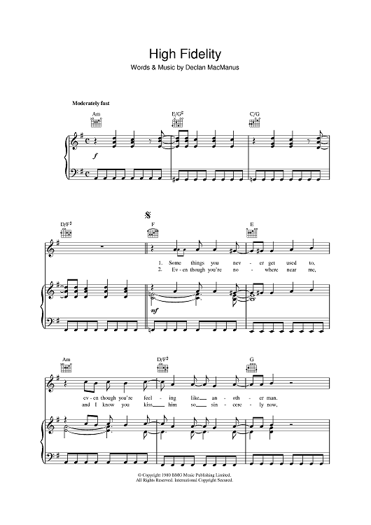 Digital Sheet Music for High Fidelity by Elvis Costello scored for Piano/Vocal/Chords; id:389989