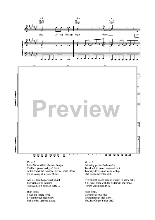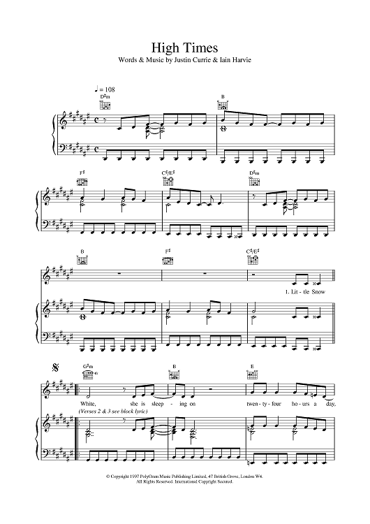 Digital Sheet Music for High Times by Del Amitri scored for Piano/Vocal/Chords; id:377307