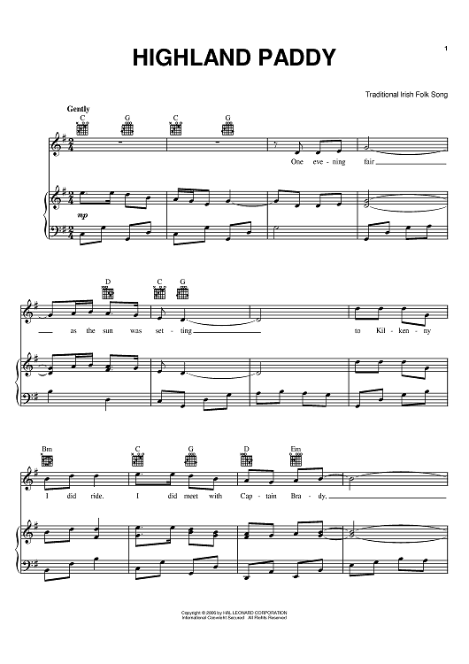 Digital Sheet Music for Highland Paddy by scored for Piano/Vocal/Chords; id:393995