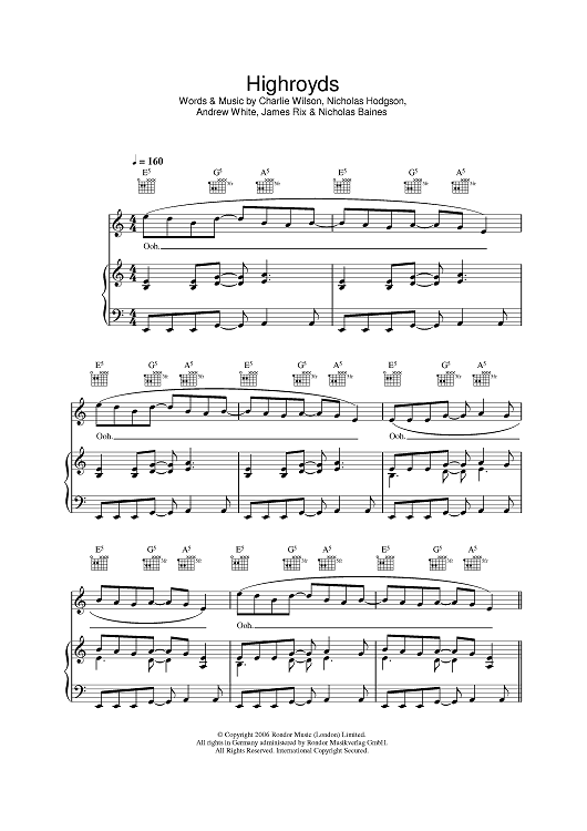 Digital Sheet Music for Highroyds by Nick Baines, Nick Hodgson, Kaiser Chiefs, Simon Rix, Andrew White, Charlie Wilson scored for Piano/Vocal/Chords; id:397025