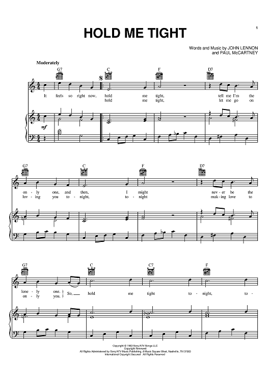 Digital Sheet Music for Hold Me Tight by Paul McCartney, The Beatles, John Lennon scored for Piano/Vocal/Chords; id:385550