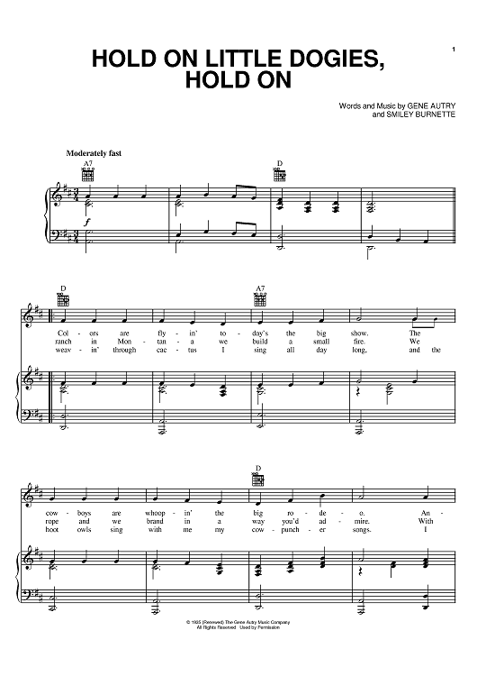 Digital Sheet Music for Hold On Little Dogies, Hold On by Gene Autry, Smiley Burnette scored for Piano/Vocal/Chords; id:381397