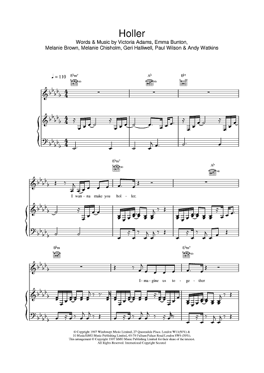 Digital Sheet Music for Holler by Emma Bunton, Melanie Brown, Victoria Adams, Spice Girls scored for Piano/Vocal/Chords; id:382582