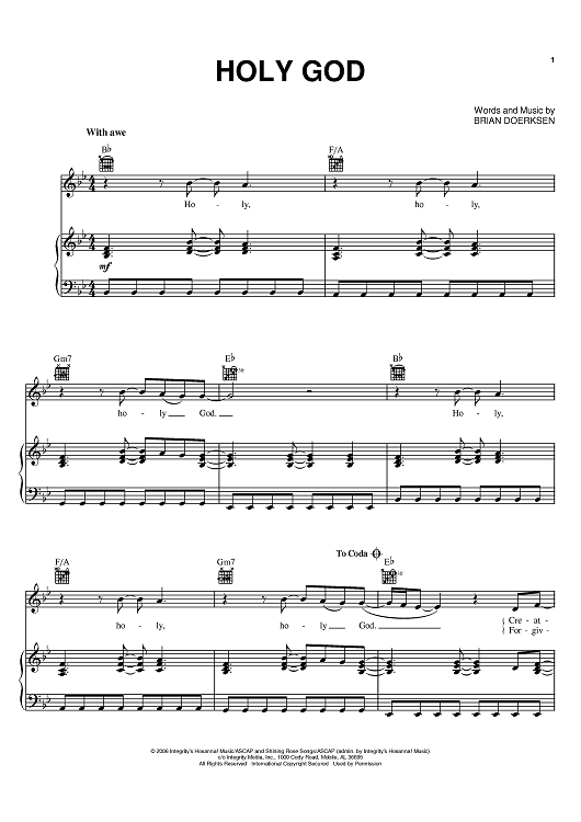 Digital Sheet Music for Holy God by Brian Doerksen scored for Piano/Vocal/Chords; id:401694