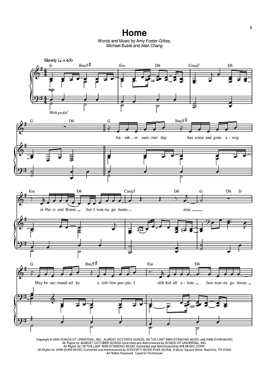 Digital Sheet Music for Home by Michael Buble, Alan Chang, Amy S. Foster scored for Piano/Vocal/Chords; id:398589