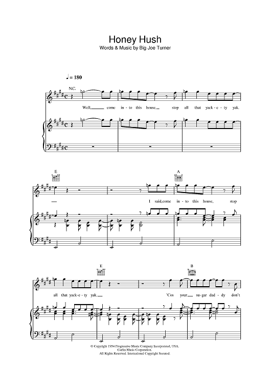 Digital Sheet Music for Honey Hush by Paul McCartney, Big Joe Turner scored for Piano/Vocal/Chords; id:390582