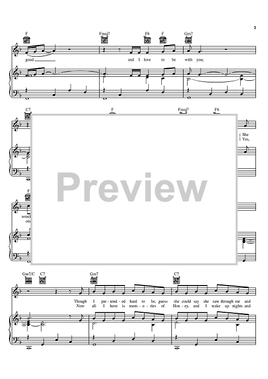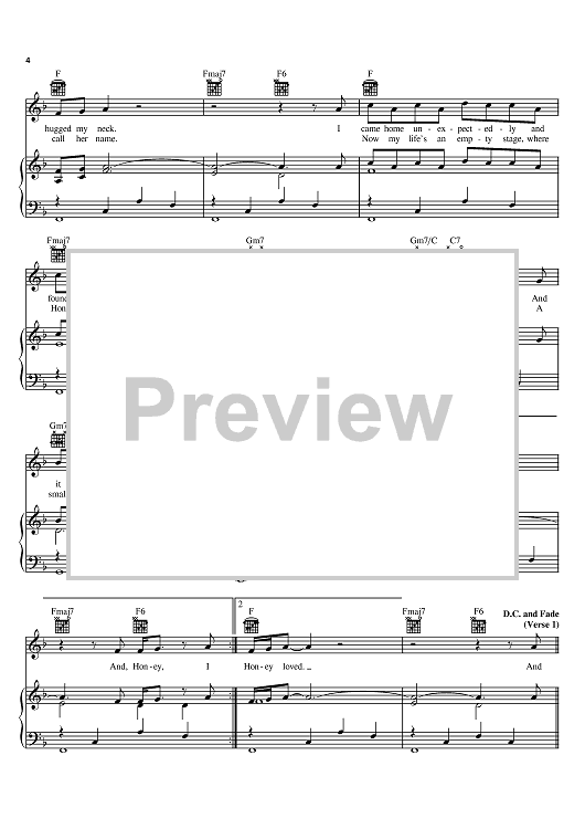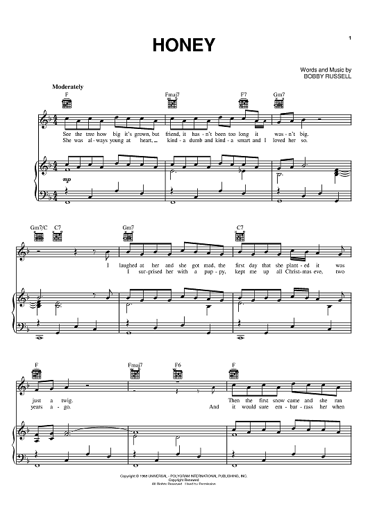 Digital Sheet Music for Honey by Bobby Goldsboro, Bobby Russell, Hank Snow scored for Piano/Vocal/Chords; id:380641