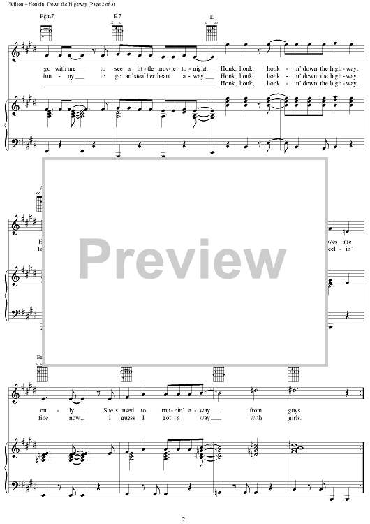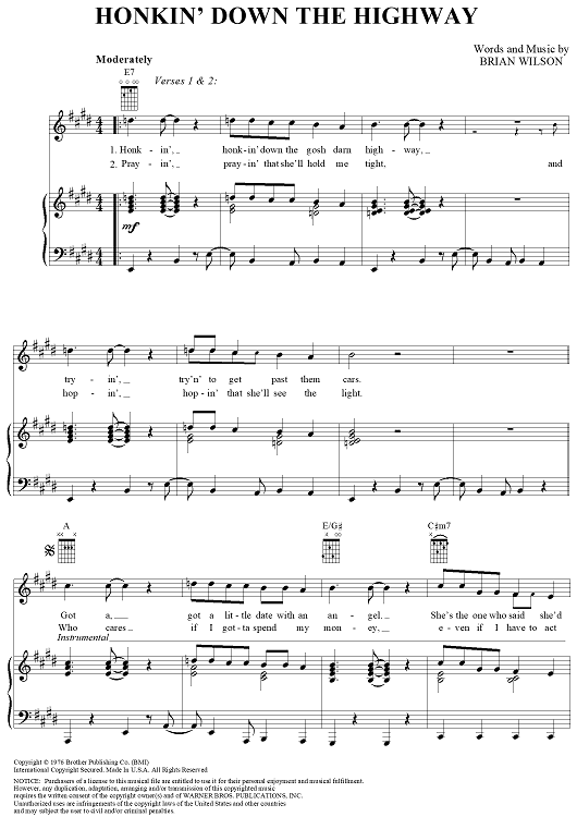 Digital Sheet Music for Honkin' Down the Highway by Brian Wilson, The Beach Boys scored for Piano/Vocal/Chords; id:264011