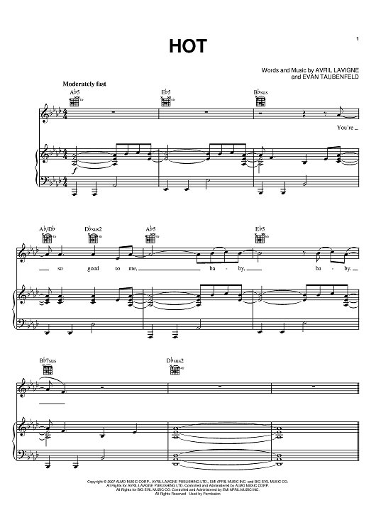 Digital Sheet Music for Hot by Avril Lavigne, Evan Taubenfeld scored for Piano/Vocal/Chords; id:398446
