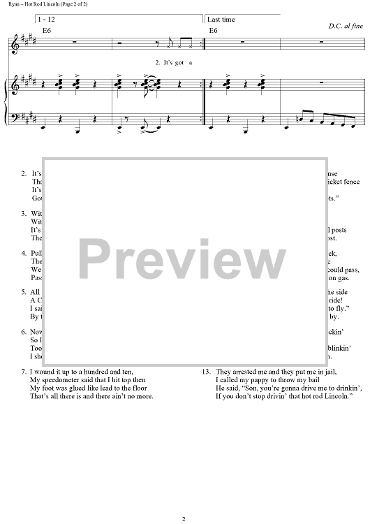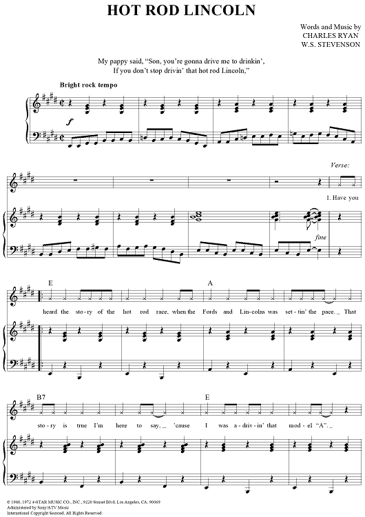 Digital Sheet Music for Hot Rod Lincoln by Charles Ryan, W. S. Stevenson, Commander Cody and the Lost Planet Airmen scored for Piano/Vocal/Chords; id:360877