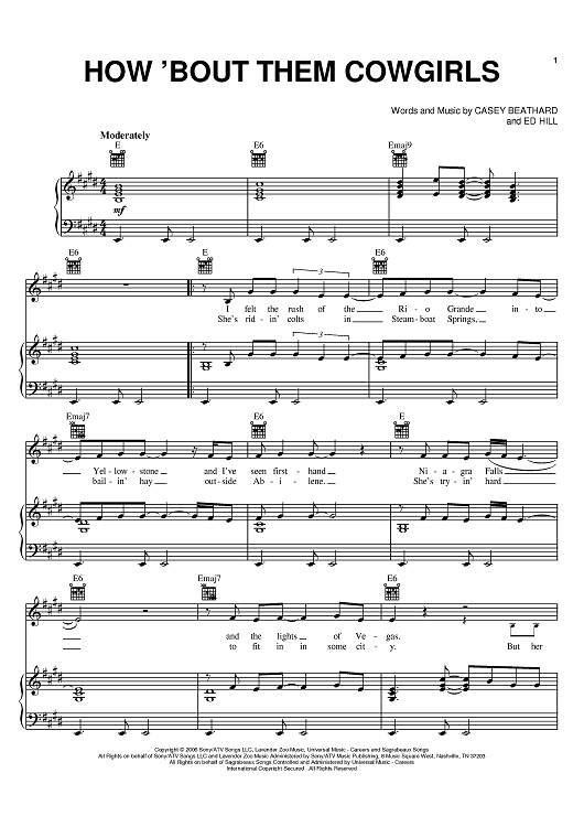 Digital Sheet Music for How 'Bout Them Cowgirls by George Strait, Ed Hill, Casey Beathard scored for Piano/Vocal/Chords; id:401600