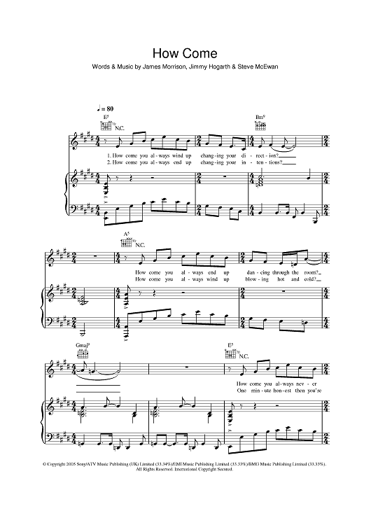 Digital Sheet Music for How Come by Steve McEwan, James Morrison, Jimmy Hogarth scored for Piano/Vocal/Chords; id:393654