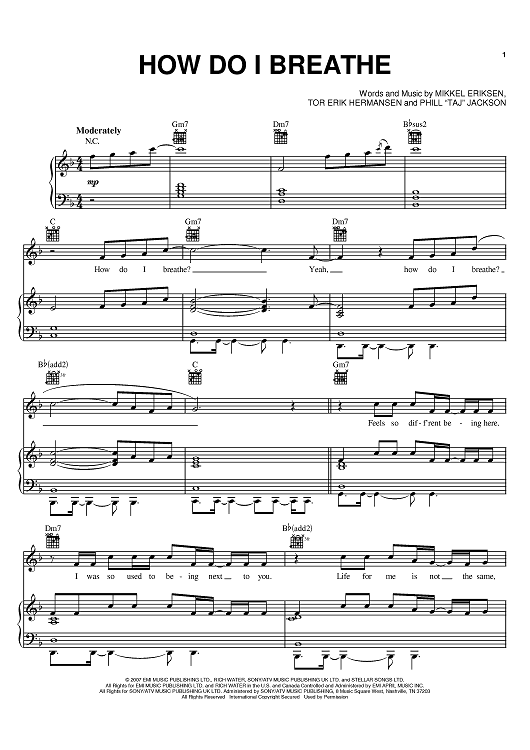Digital Sheet Music for How Do I Breathe by Mario, Tor Erik Hermansen, Phill "Taj" Jackson, Mikkel Eriksen scored for Piano/Vocal/Chords; id:398432
