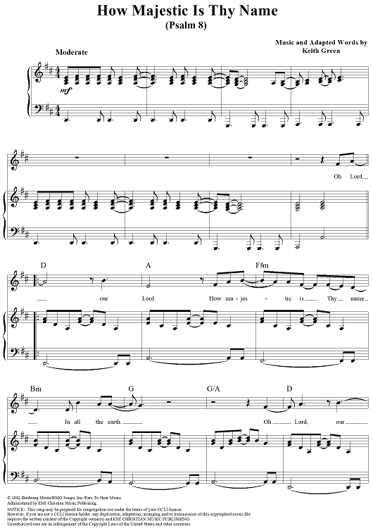 Digital Sheet Music for How Majestic Is Thy Name (Psalm 8) by Keith Green scored for Piano/Vocal/Chords; id:113288