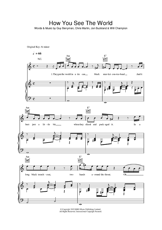Digital Sheet Music for How You See The World by Chris Martin, Coldplay, Jonny Buckland, Guy Berryman scored for Piano/Vocal/Chords; id:397005