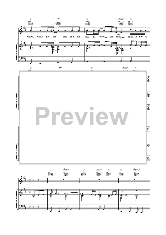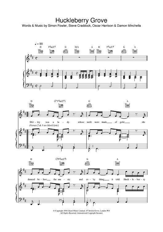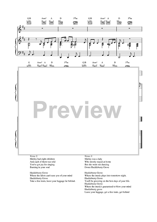 Digital Sheet Music for Huckleberry Grove by Steve Cradock, Simon Fowler, Oscar Harrison, Damon Minchella, Ocean Colour Scene scored for Piano/Vocal/Chords; id:379797
