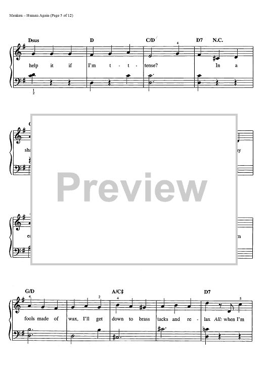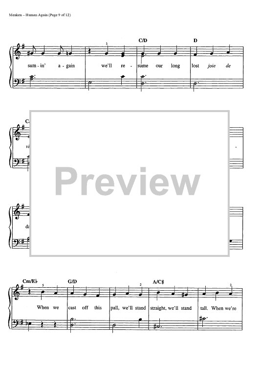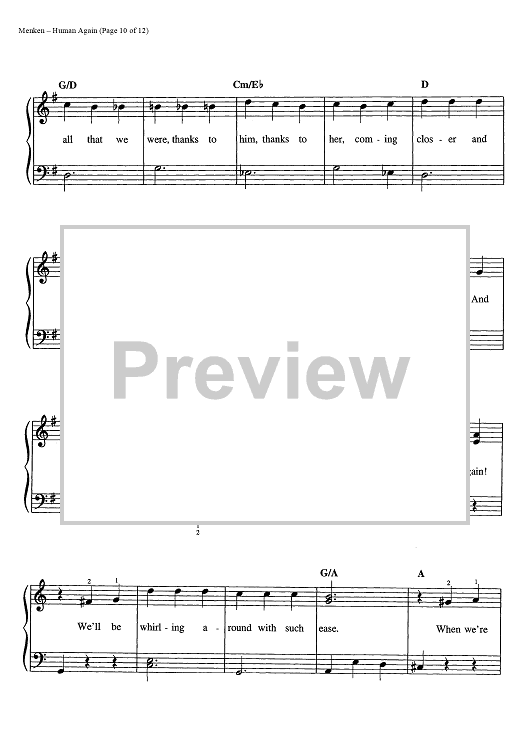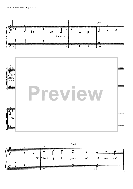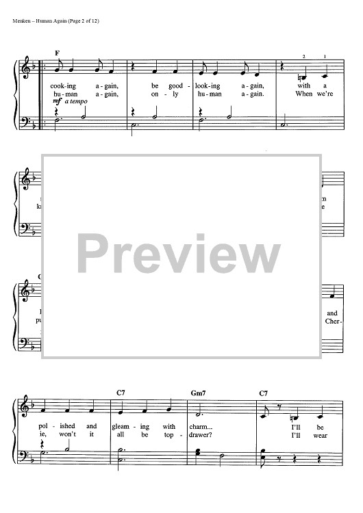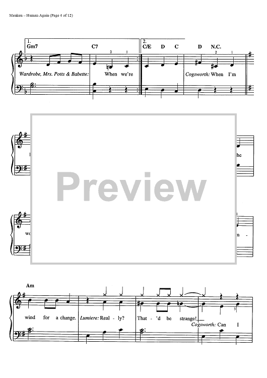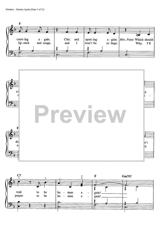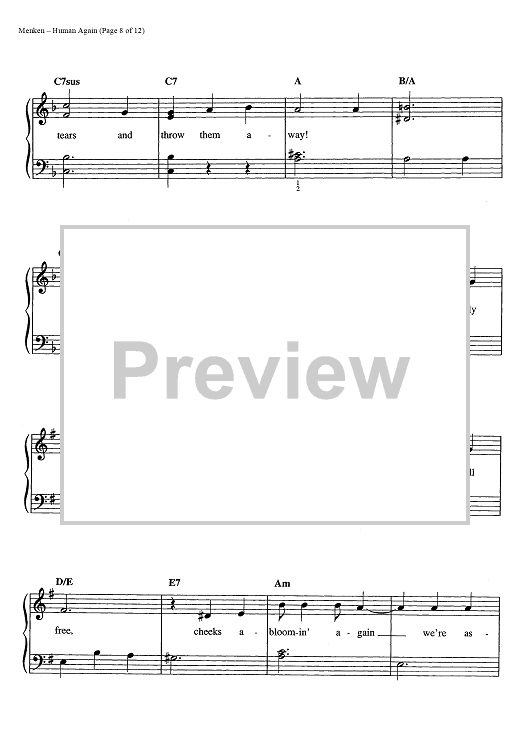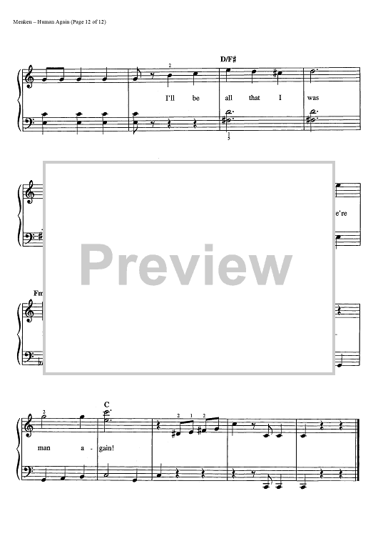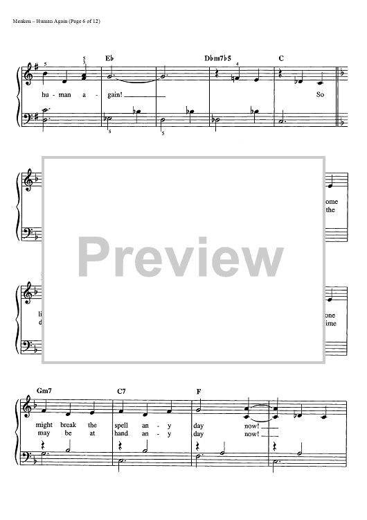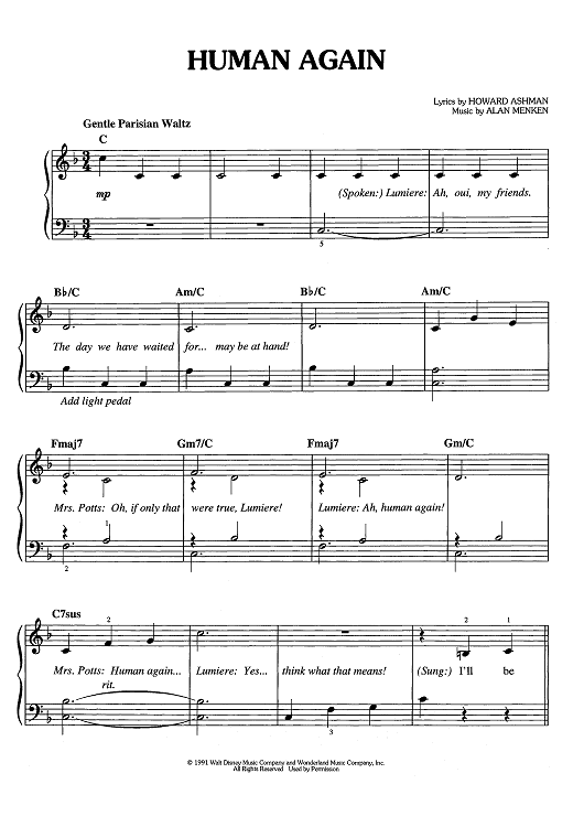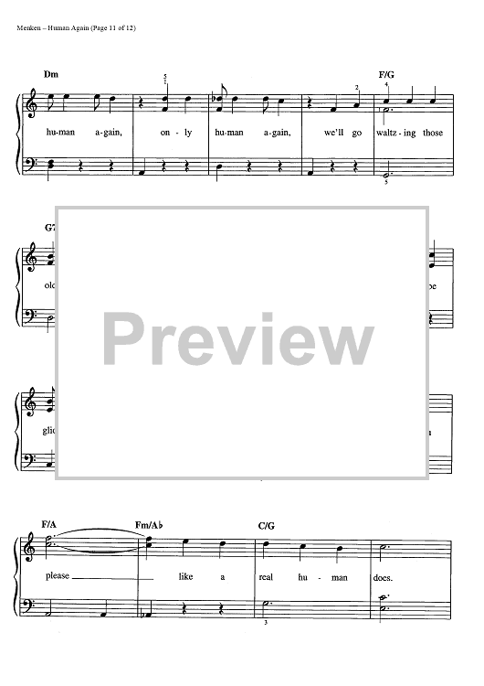 Digital Sheet Music for Human Again by Alan Menken, Howard Ashman scored for Easy Piano/Vocal/Chords; id:448723