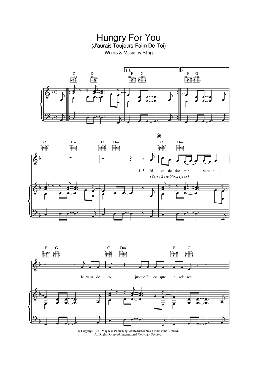 Digital Sheet Music for Hungry For You (J'aurais Toujours Faim De Toi) by Sting, The Police scored for Piano/Vocal/Chords; id:390309